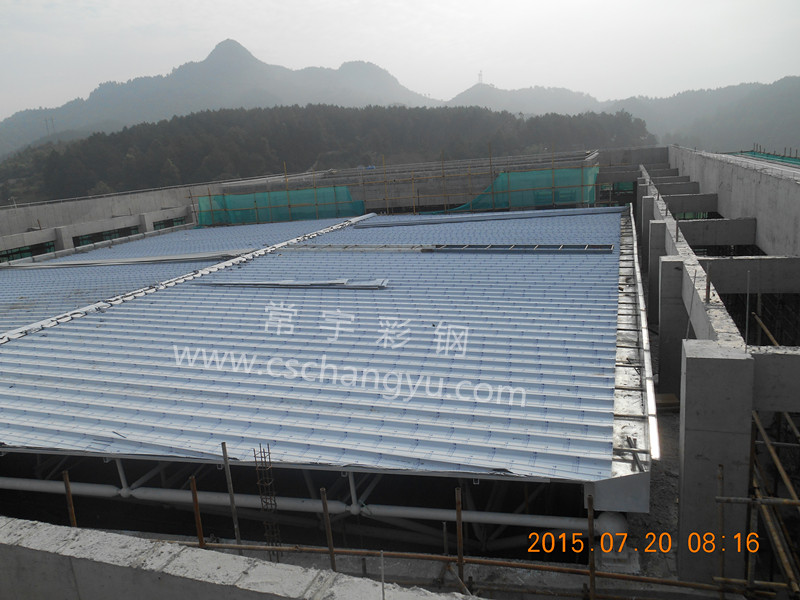 發(fā)布時間:2015-7-29來源:常宇彩鋼作者:常宇彩鋼瀏覽次數(shù):(0) 1.0mm PVDF涂層直立鎖邊鋁鎂錳板應(yīng)用案例 _遵義會堂鋼結(jié)構(gòu)屋面